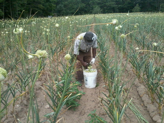 We have been premium gourmet garlic producers since 1978, on the sandy loam fields of our farms located in Brant County. This area is part of the south western region of Ontario known for premium quality fruit and vegetables, as well as the diversity of agriculture crops from apples, ginseng, and tobacco, to zucchini. There are hundreds of garlic varieties including soft neck and hard neck strains. It has been our experience to have propagated numerous varieties over the years from cloves and garlic bulbils to bulbs. Through this experience we have found the hard neck strain Music to be the main variety grown in our garlic operation. Through this strain we have achieved premium high quality gourmet garlic yield with Music consistently every year, and to our surprise have achieved some bulb weights just under half a pound.